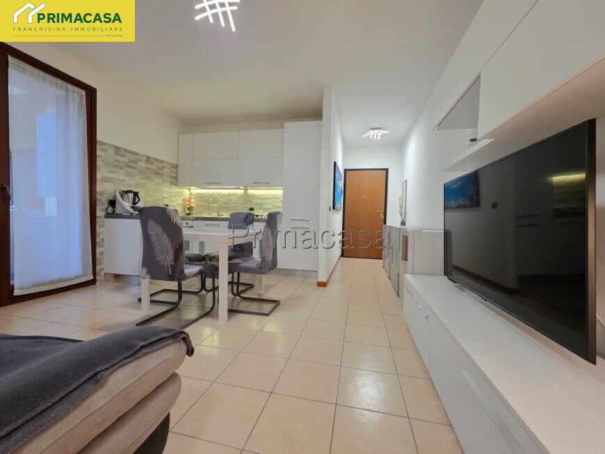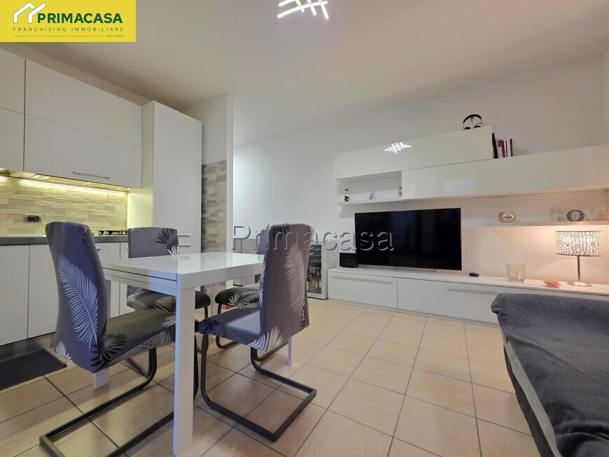 L’immobile è composto da un ingresso che conduce alla zona giorno dove troviamo il soggiorno con l'angolo cottura, dotato di portafinestra con accesso diretto al terrazzo. Proseguendo si ha un disimpegno che accompagna alla zona notte, dove troviamo un comodo bagno finestrato con doccia e un’ampia camera matrimoniale. La soluzione è inoltre dotata di climatizzatore inverter e caldaia a condensazione sostituita nel 2025. A completare la proprietà è presente un comodo garage al piano seminterrato della palazzina. L’appartamento gode di una posizione ideale, inserita in un contesto tranquillo ma allo stesso tempo strategica, grazie alla rapida vicinanza alla tangenziale.